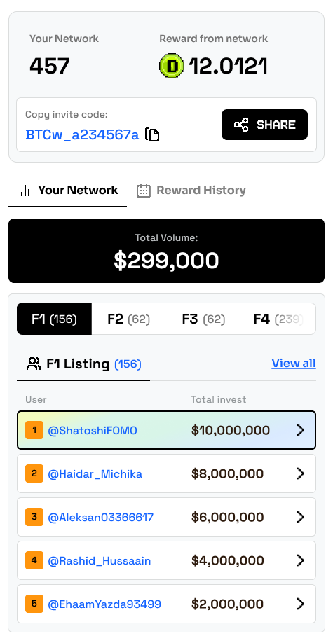 In BTCw\.Tech, the Revenue Sharing system is a fundamental mechanism that ensures the community benefits from the platform's success. Here's how it works: